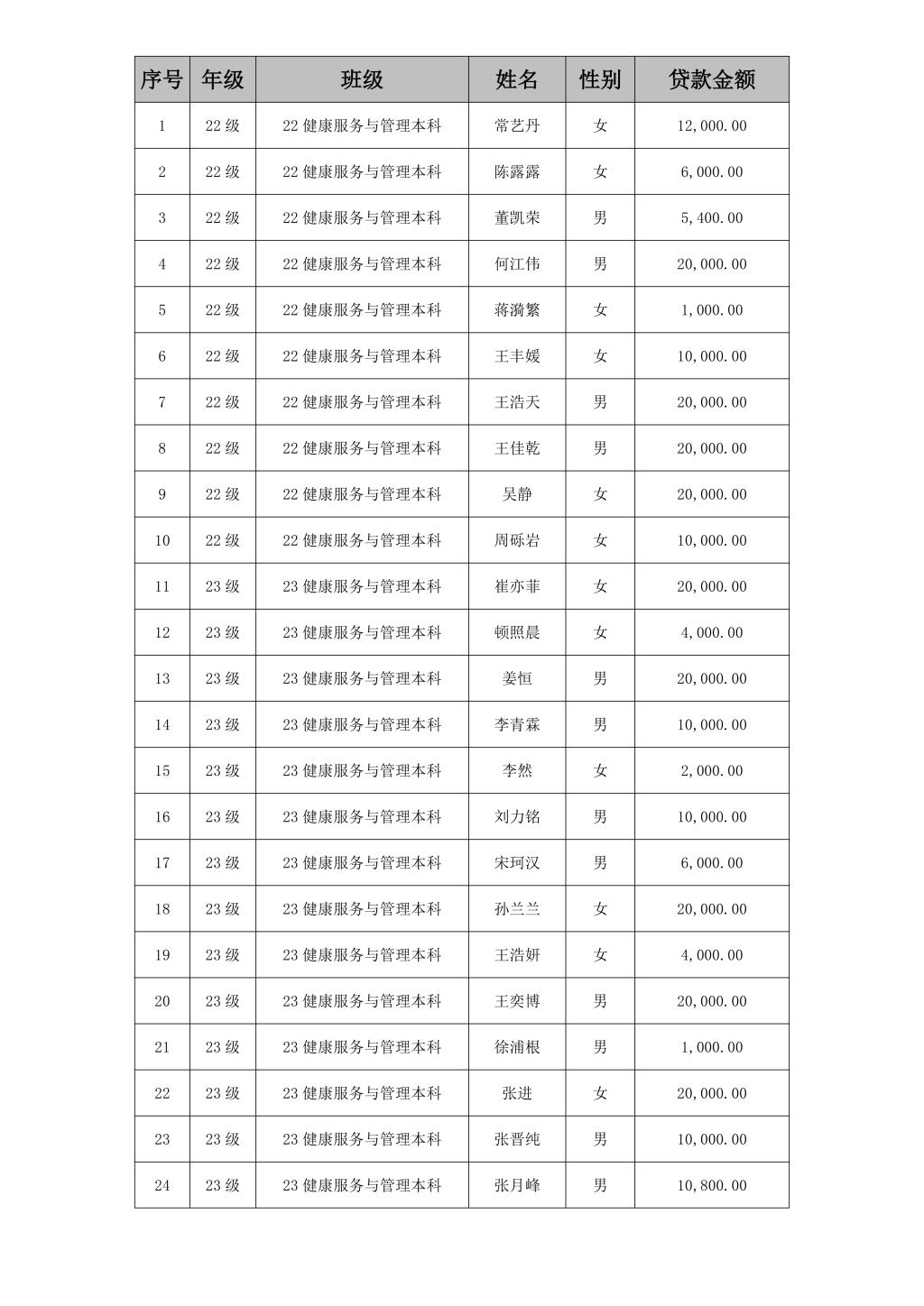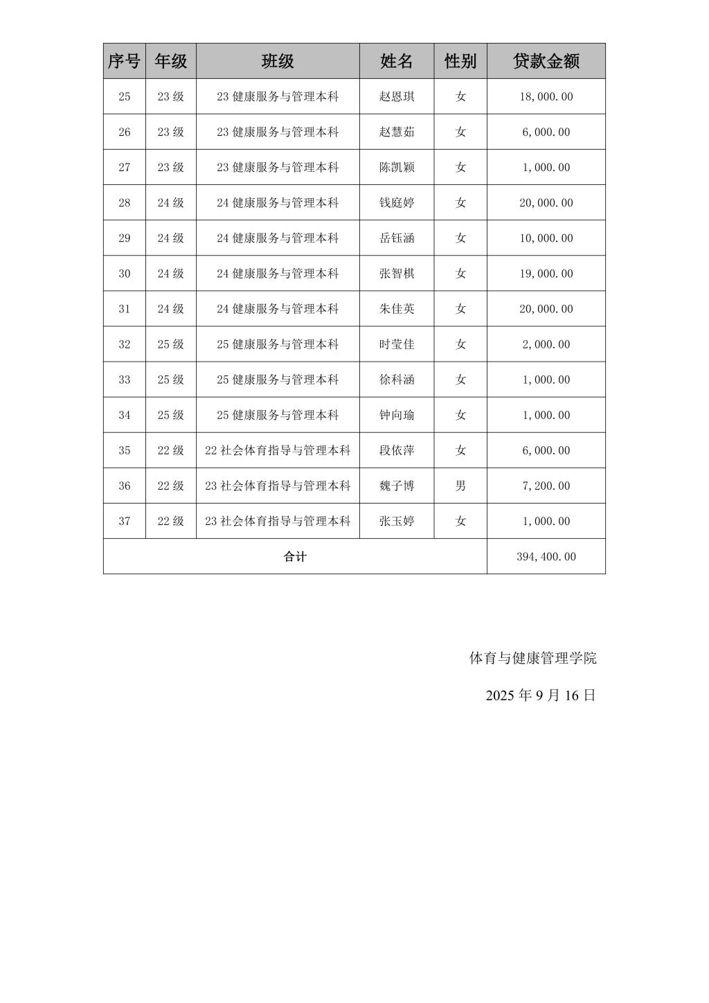 体育与健康管理学院2025年度高校助学贷款申请明细表