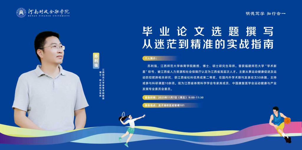 专家介绍:苏利强,江西师范大学体育学院教授、博士、硕士研究生导师。曾获福建师范大学“学术新星”称号,被江西省人力资源和社会保障厅认定为江西省高层次人才。主要从事运动健康促进及运动防控肥胖相关研究,获江西省社科优秀成果二等奖,在国内外学术期刊发表论文50余篇,主持或参与科研课题10余项。现为江西省体育科学学会专家库成员、中国康复医学会运动健康与产业发展专业委员会委员。