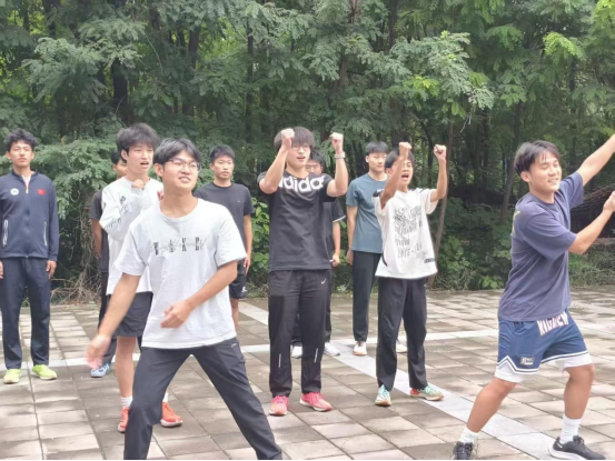 在展示环节中,“东风队”“红心向党队”等小组依次登场,同学们精神饱满、配合默契,从铿锵有力的口号到激情昂扬的合唱,充分展现了新时代青年的团队协作能力与爱国情怀。2024社体专业张玉坤同学评价:“课程氛围轻松愉快,在收获快乐的同时,团队精神也得到了切实培养。”