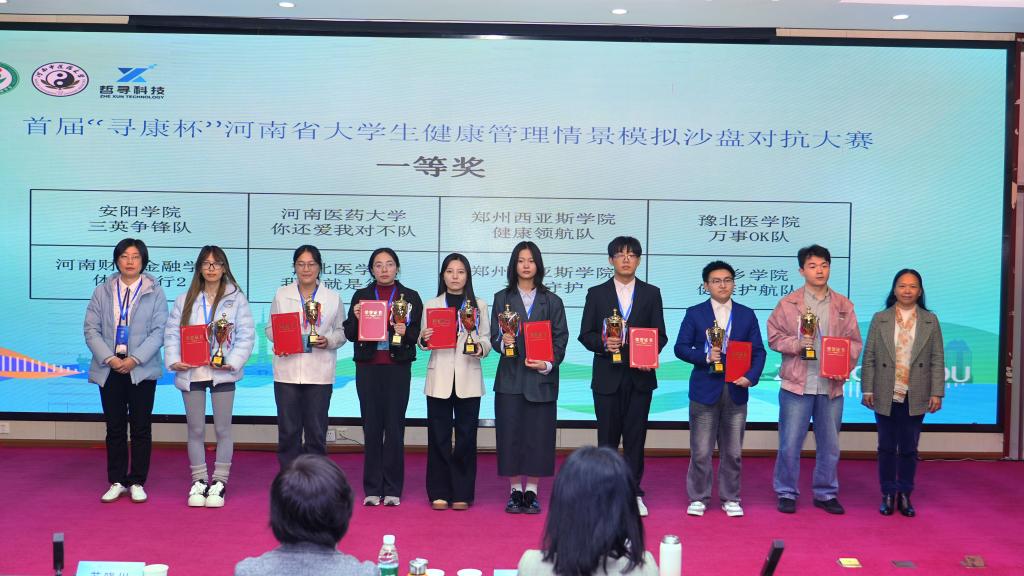 比赛中,参赛队通过情景模拟沙盘的形式,将理论知识与实际操作深度融合,在沙盘对抗、团队答辩等环节展开激烈角逐,充分展现了我院学子在面对复杂健康管理问题时的决策研判、团队协作以及创新实践能力。最终,我院参赛队凭借精准的策略制定、默契的团队协作和出色的现场表现脱颖而出,荣获一等奖一项、二等奖两项。